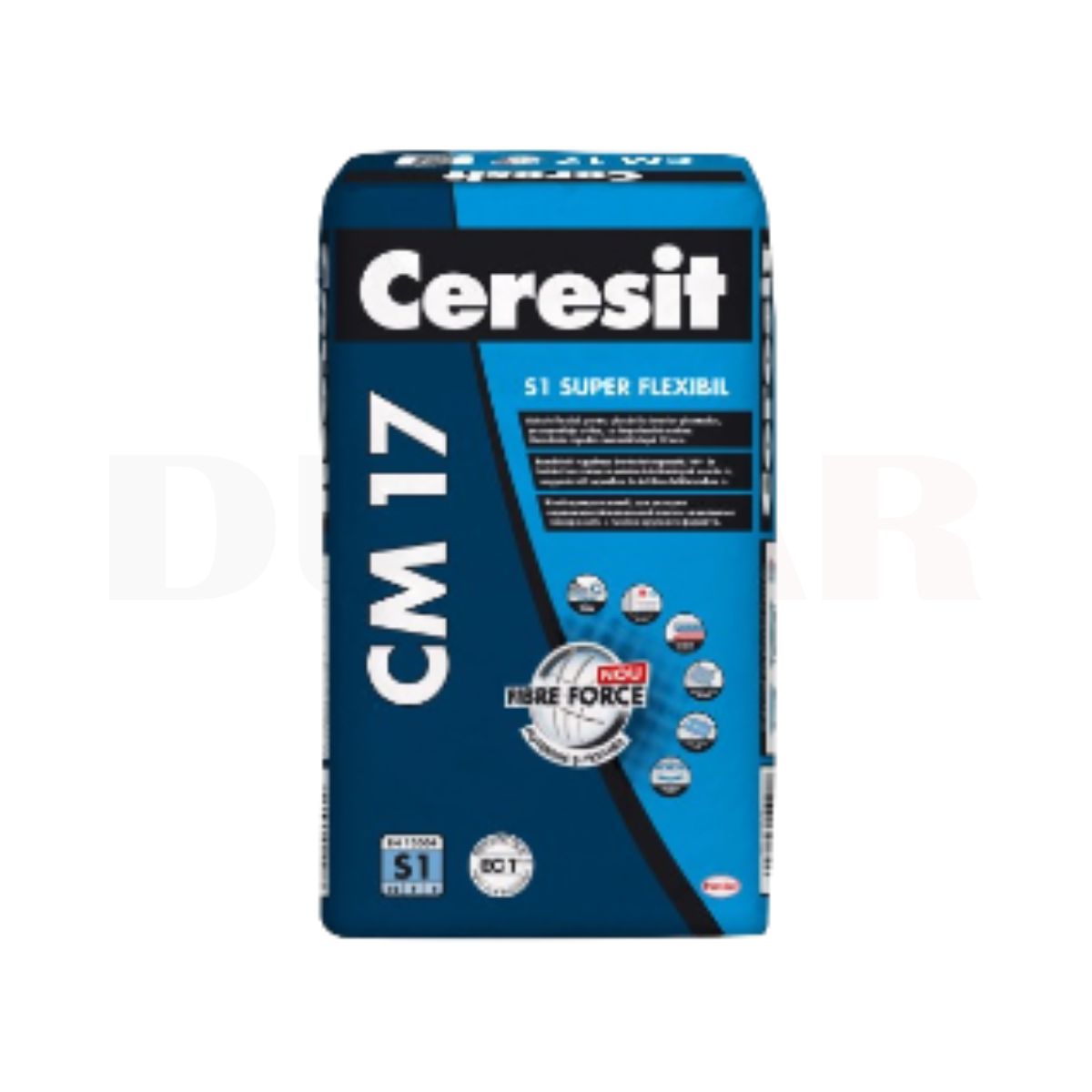 Adeziv gresie și faianță Ceresit CM 17, interior/exterior, 25KG – este un adeziv flexibil specializat pentru aplicarea plăcilor ceramice atât în interior, cât și în exterior. Se caracterizează prin aderența puternică la diverse suprafețe, rezistența la îngheț și la temperaturi ridicate, precum și prin facilitarea lucrului datorită consistenței sale.