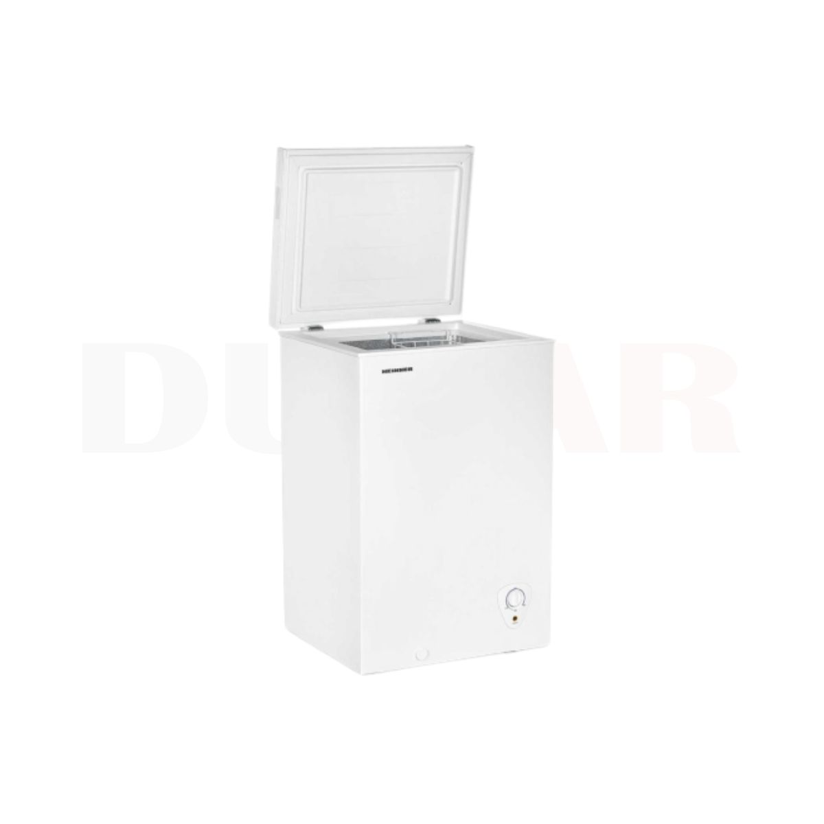 Ladă frigorifică Heinner HCF-H98F+, dimensiuni: 54.6 × 47.9 × 85.4 cm, capacitate totala: 95L, mâner integrat, control mecanic cu termostat ajustabil, coș din sârmă,  decongelare manuala, capacitate de congelare: 4.8kg/24h,  culoare: alb.