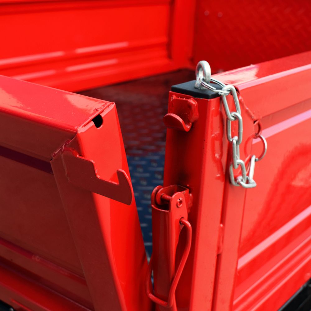 Dispune de scaun cu spătar pentru confort în utilizare și sistem de basculare manuală pentru descărcare rapidă.